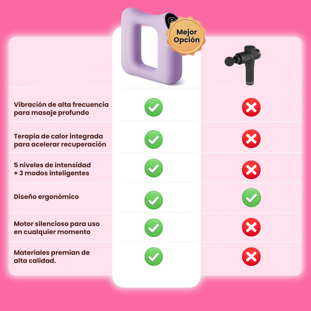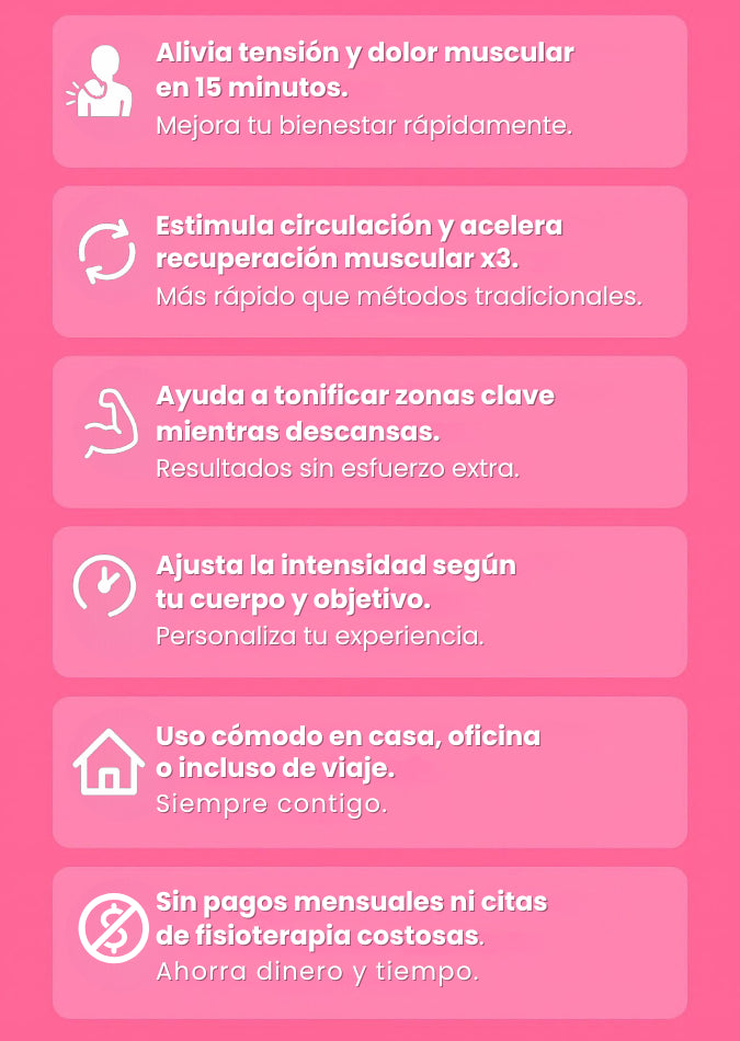 Alivio inmediato con vibración + calor en minutos.